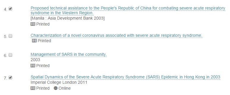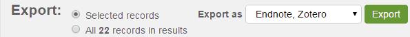 Other library catalogues will have a different layout but usually they will give you an option to “export”, “send to” or “save your results”. Look for the choice of exporting results as an RIS file or select the Endnote option if one is available.
