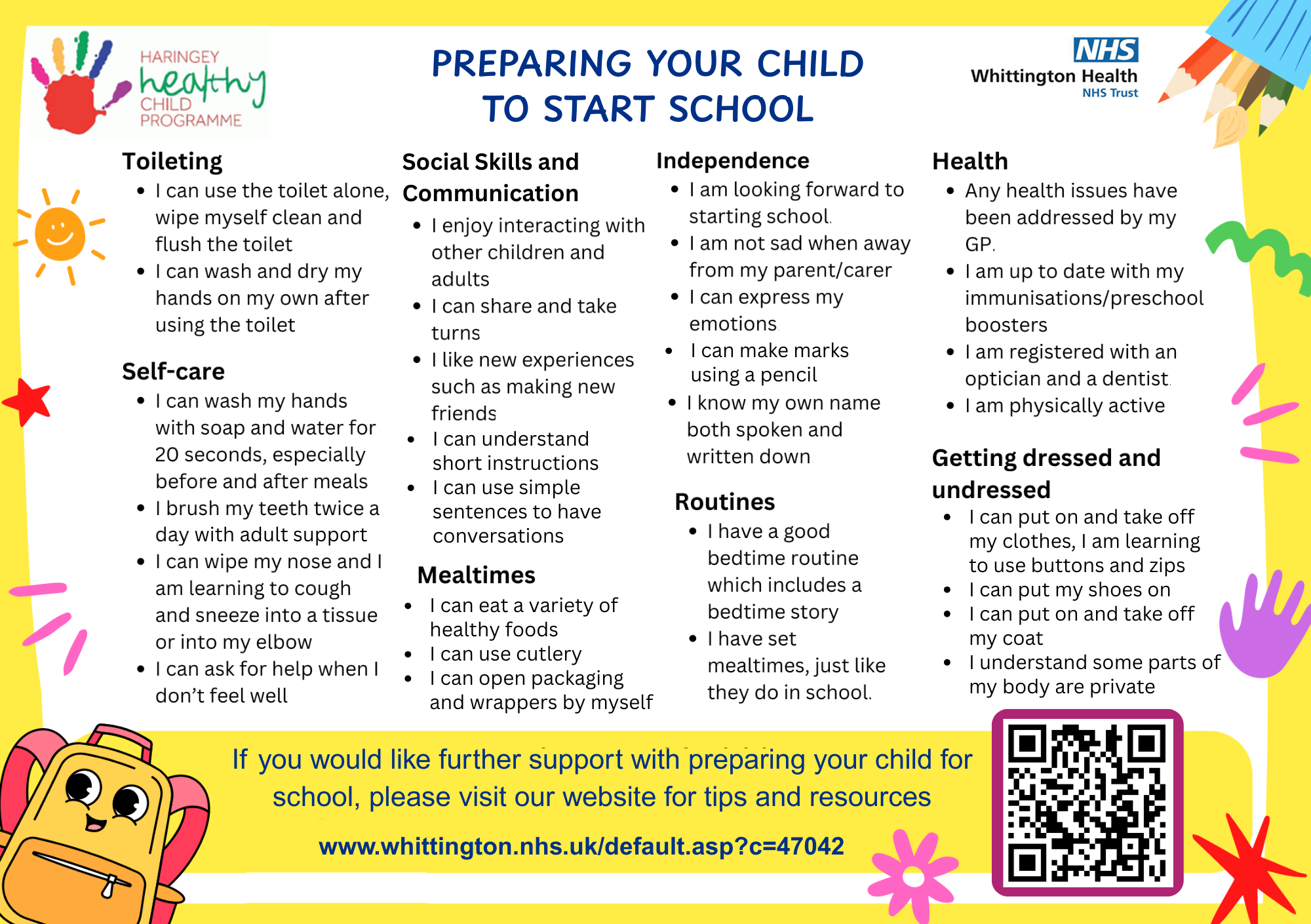 If you need support with getting your child ready to start school, please have a look through the links and resources below. You can also